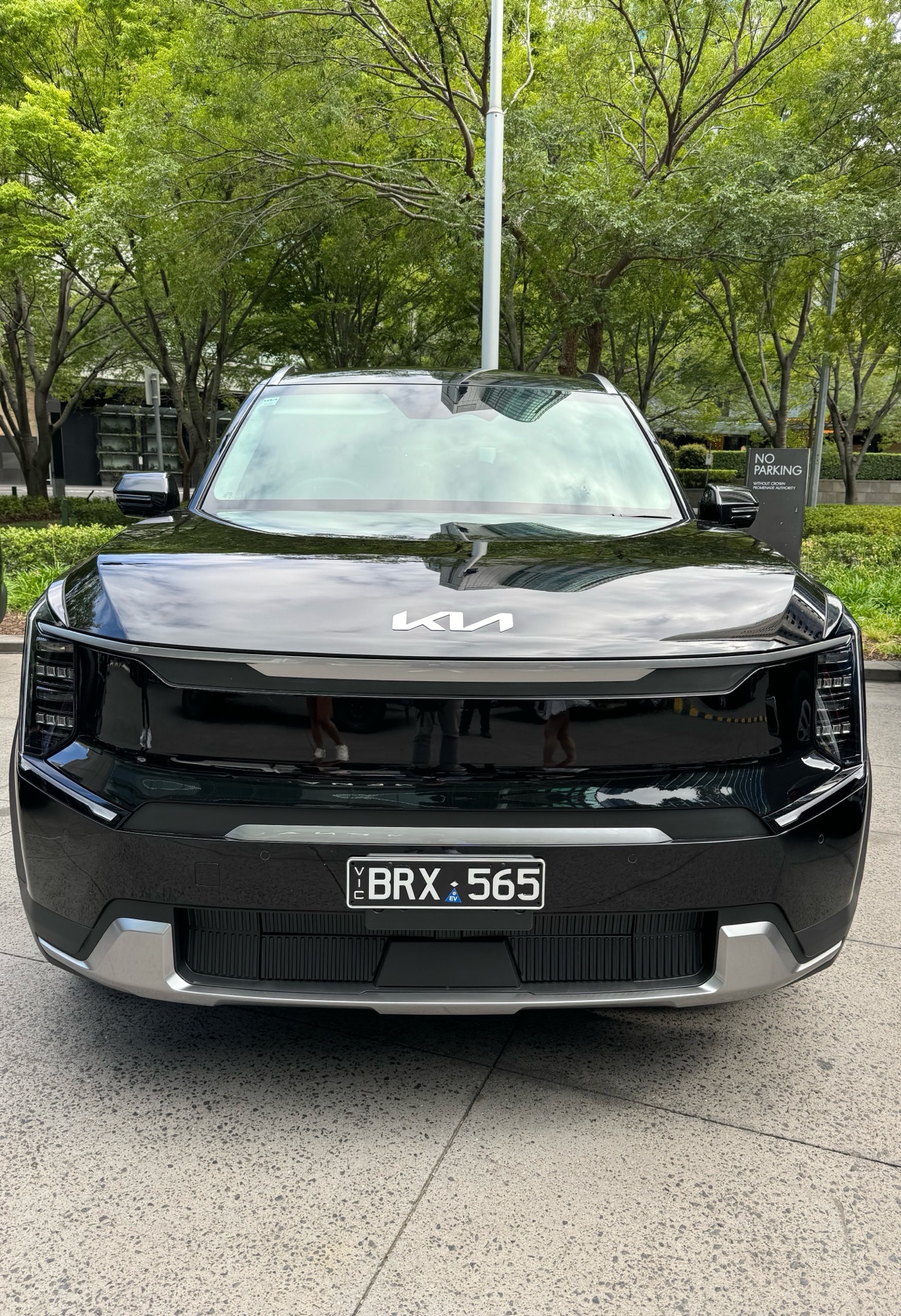 CONFESSION, I’M AN EV virgin and so must go through the requisite and disconcerting sensation of pressing the on button in the EV9 and being unsure if the car has actually started. I seriously can’t tell but shrug my shoulders and proceed to press on the accelerator. Sure enough, we begin to roll silently roll out the driveway at Crown Promenade in Melbourne’s Southbank, our sat-nav set for a Brighton mansion.
