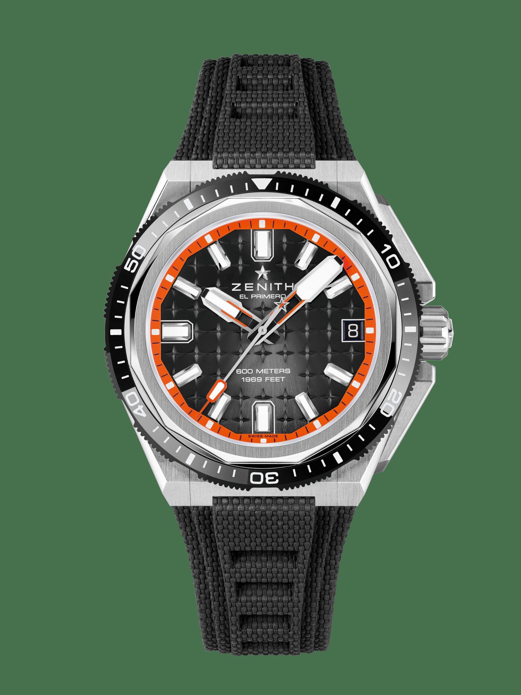 Zenith’s Defy Extreme series is all about pushing boundaries. While the brand is renowned for its mastery of the air, Zenith is now turning its attention to the sea, debuting the first dive watch in its offering: the Defy Extreme Diver. As you would expect from a dive watch, the Defy Extreme Diver has a screw-down lock with 600 metres of water resistance. That will hold up at depths of up to 1,969 feet, a nod to the original Zenith Defy Diver, which was released in 1969. The immense practical applications of the watch do not result in a compromise on style. A 42.5mm titanium case with an angular design and vertically brushed strokes, as well as a ceramic outer bezel, maintain the watch’s sophisticated appearance.