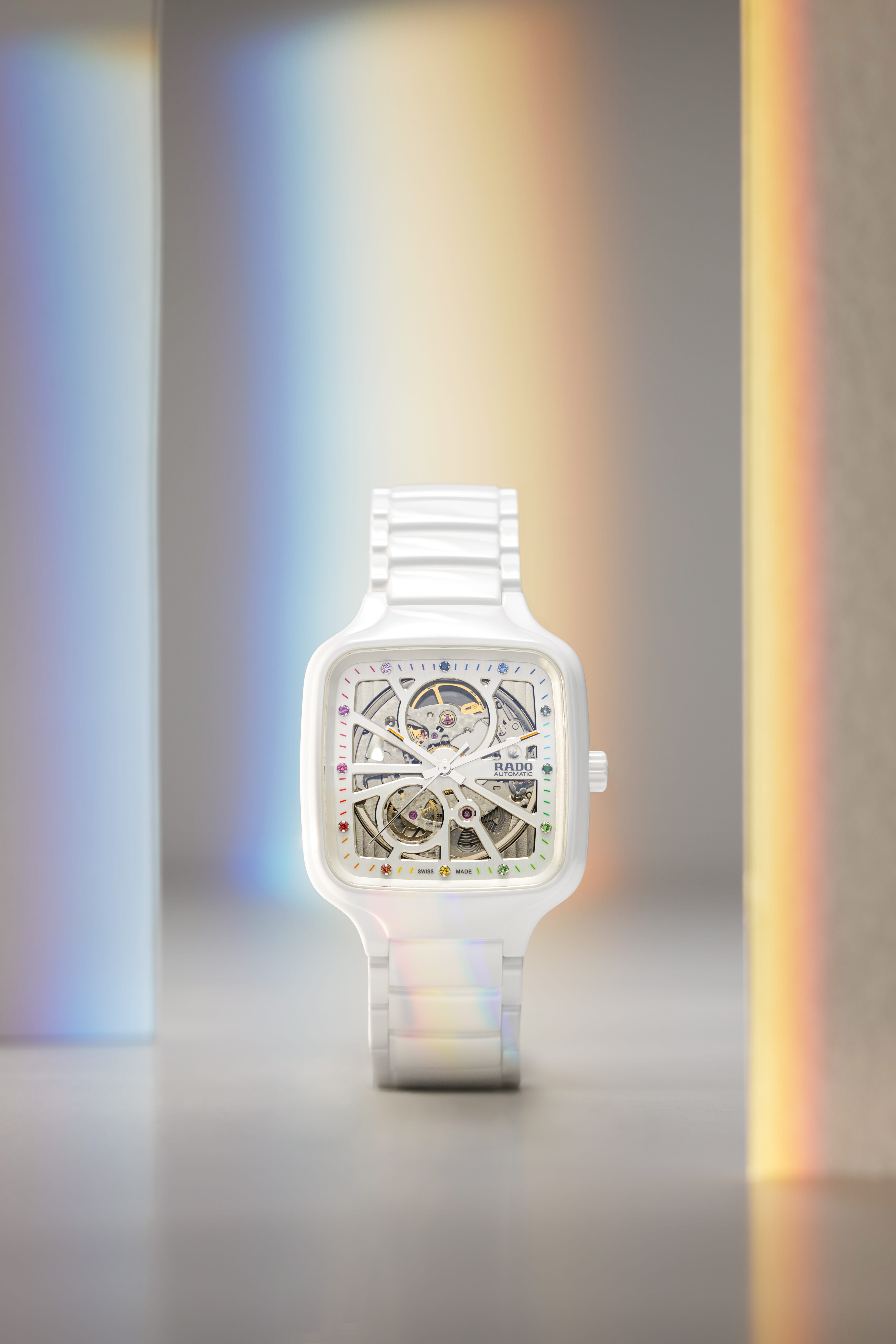 While the entirety of Swatch Group doesn’t participate in Watches & Wonders, a new release from one of the group’s foremost houses bears mentioning regardless. By this point, it should be common knowledge that Rado are the masters of ceramics. And on no watches are Rado’s ceramic artistry better displayed than on the True Square collection, which welcomed two new additions overnight. The skeletonised, square timepieces are made of Rado’s signature high-tech ceramic material and come in either white or turquoise monobloc cases. The white case is a particular standout, with 12 different coloured gems serving as hour markers on the dial.